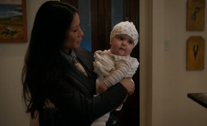 | Later on Kitty returns to NYC to warn Holmes that those that prosecuted a case in London involving Eli Kotite are all dying, Watson notices that Kitty is evasive when asked questions near her life. Leaving the investigation several times without explanation, Watson waits until Kitty leaves a brownstone she's staying at. Breaking in, she'south attacked past a large woman who she struggles with, bully a window. The adult female pins Watson against a wall and chokes her until Kitty bursts in and tells her to stop. Introducing the woman as Margaret, much to Kitty's dismay, Margaret says she's a nanny and is taking intendance of Kitty's baby. In the kitchen, Kitty shows Watson her son, Archie. Explaining that she and Archie's dad aren't together, but he is very supportive, she kept Archie a secret every bit she felt that they won't let her participate in the example if they knew she was a mother. Later, she introduces her nanny Margaret and Archie to Holmes, who is surprised, but is interrupted by a call from Kotite. ("Wrong Side of the Road") | |